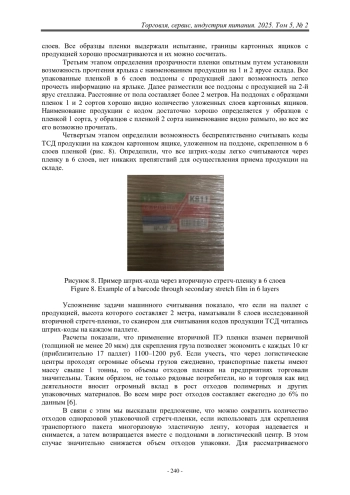 В работе обсуждается проблема использования полимерных материалов для формирования транспортных грузопакетов, что является необходимой стадией в системе логистики. Эта технология используется при отгрузке товаров от производителей и в распределительных центрах крупных предприятий торговли. Показано, что основной метод скрепления пакетов на поддоне с помощью стретчпленки приводит к большим затратам материальных ресурсов и увеличивает объем отходов предприятий торговли. Проведена экспертиза разных образцов полиэтиленовой пленки, использованной для скрепления транспортного пакета. Обсуждаются результаты сравнительных исследований свойств первичной и вторичной стретч-пленки в процессе опытной эксплуатации при перевозке груза. Предложены более экономные решения для формирования пакета с применением вторичных полимеров. Обсуждается возможность альтернативного подхода к формированию транспортных пакетов с применением многократного применения скрепляющих эластичных лент.