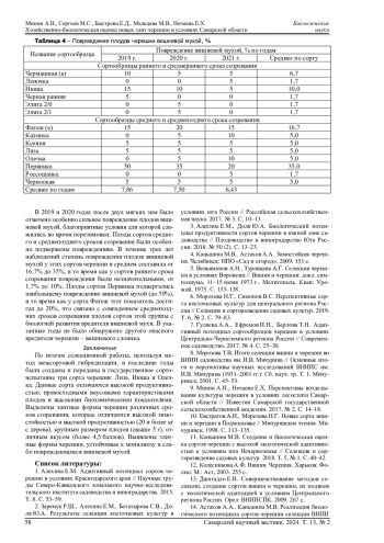 19. Ищенко Л.А., Жуков О.С., Щекотова Л.А. Коккомикоз вишни: биология возбудителя и источники устойчивости // Микология и фитопатология. 1979. № 4. С. 327-330.
