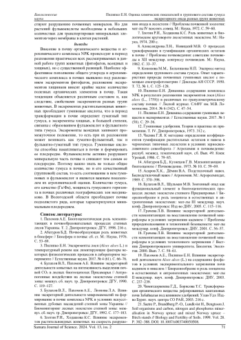 9. Кононова М.М., Бельчикова Н.П. Экспресс-метод определения группового состава гумуса. Опыт характеристики природы почвенных гуминовых кислот с помощью спектрофотометрии // Доклады АН СССР. 1950. Т. 72, № 1, С. 125-128.