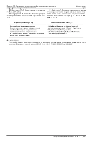 24. Сафонов А.П. Состав негидролизуемого остатка гумусообразователей и его роль в формировании гумусовых кислот почв // Органическое вещество почв и методы его исследования: сб. науч. тр. Л.: Изд-во ЛСХИ, 1990. С. 21-29.