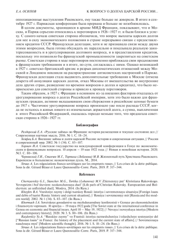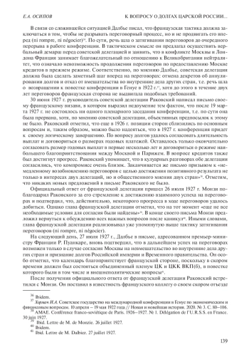ОСИПОВ Е. А. К ВОПРОСУ О ДОЛГАХ ЦАРСКОЙ РОССИИ. СОВЕТСКО-ФРАНЦУЗСКАЯ КОНФЕРЕНЦИЯ 1926-1927 ГОДОВ ПО МАТЕРИАЛАМ АРХИВА МИД ФРАНЦИИ // НОВАЯ И НОВЕЙШАЯ ИСТОРИЯ. 2022. № 5