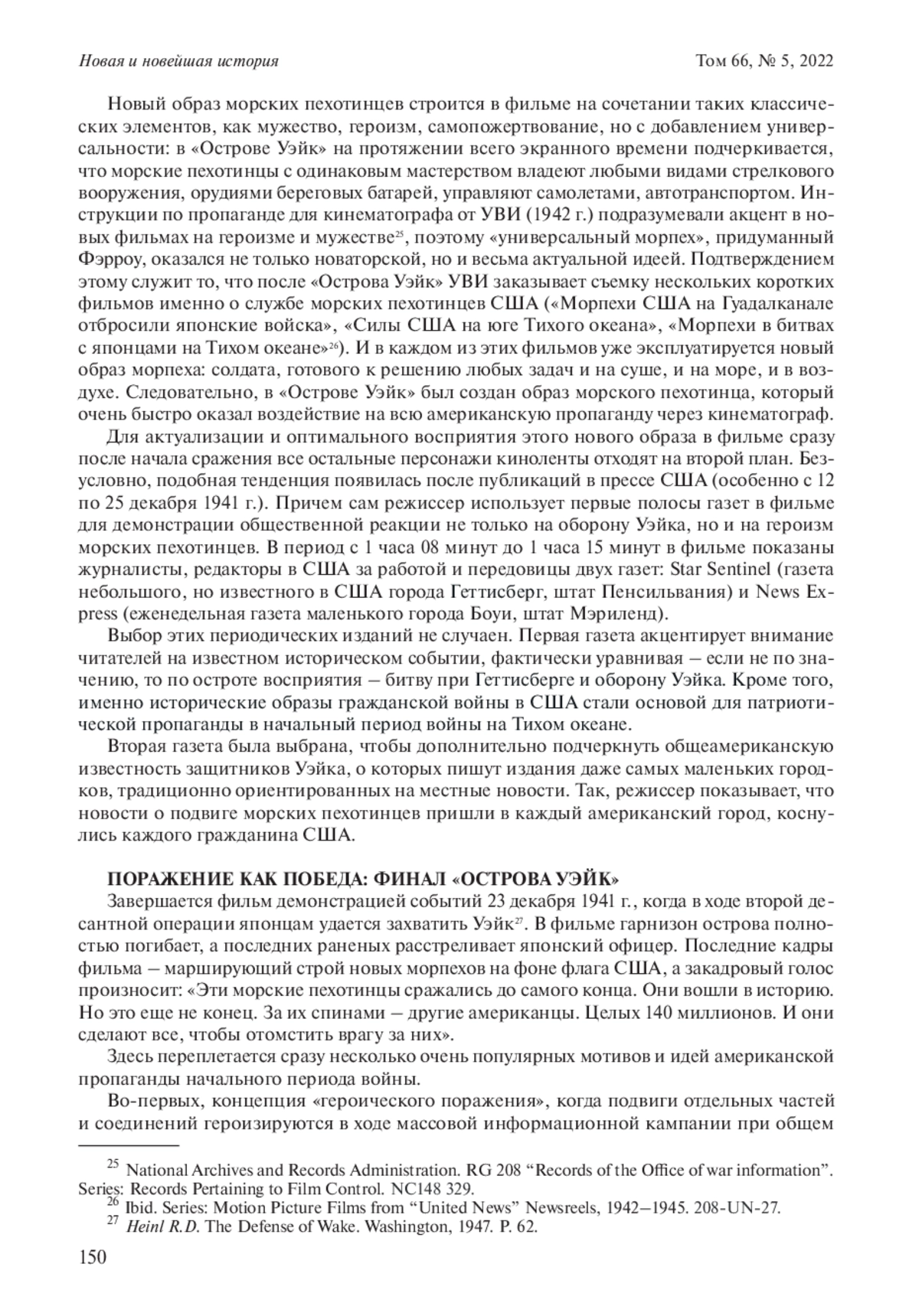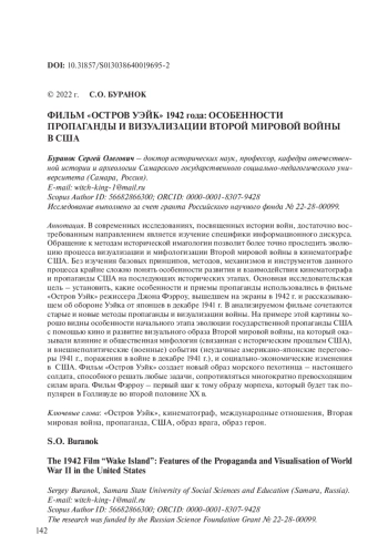 БУРАНОК С. О. ФИЛЬМ "ОСТРОВ УЭЙК" 1942 ГОДА: ОСОБЕННОСТИ ПРОПАГАНДЫ И ВИЗУАЛИЗАЦИИ ВТОРОЙ МИРОВОЙ ВОЙНЫ В США // НОВАЯ И НОВЕЙШАЯ ИСТОРИЯ. 2022. № 5
