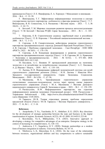 9. Сергеева, А. В. Концепция формирования и развития стратегического партнерства предпринимательских структур [Текст] / А. В. Сергеева, Ю. А. Кравченко // Экономика и предпринимательство. – 2022. – № 5(142). – С. 873–881. DOI: 10.34925/EIP.2022.142.5.165.