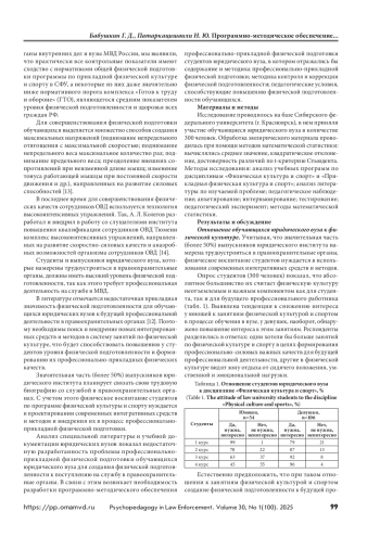 1. Реализуемая в юридических вузах дисциплина «Физическая культура и спорт» не в полной мере решает задачи профессионально-прикладной физической подготовки обучающихся для создания должного уровня физической подготовленности выпускников.