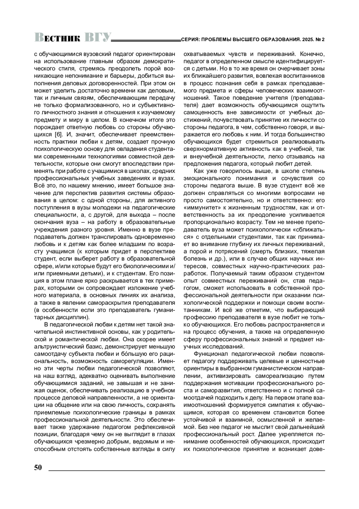 7. Volodina O. V. Love for children as the basic of teacher professionalism / O. V. Volodina // International Reasearch Journal. - 2013. - No. 12(29). - URL: https://research-journal.org/en/archive/12-19-2013-december/love-for-children-as-the-basis-of-teacher-professionalism (дата обращения: 03.04.2025).