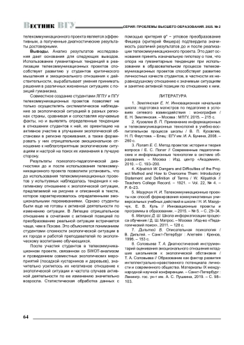 8. Соловьева Т. А. Диагностический инструментарий оценивания эмоционального отношения младших школьников к экологической обстановке / Т. А. Соловьева // Образование как фактор развития интеллектуально-нравственного потенциала личности и современного общества. Материалы IX международной научной конференции. - Санкт-Петербург: Ленингр. гос. ун-т им. А. С. Пушкина, 2019. - С. 98-103. EDN: KLUQYP