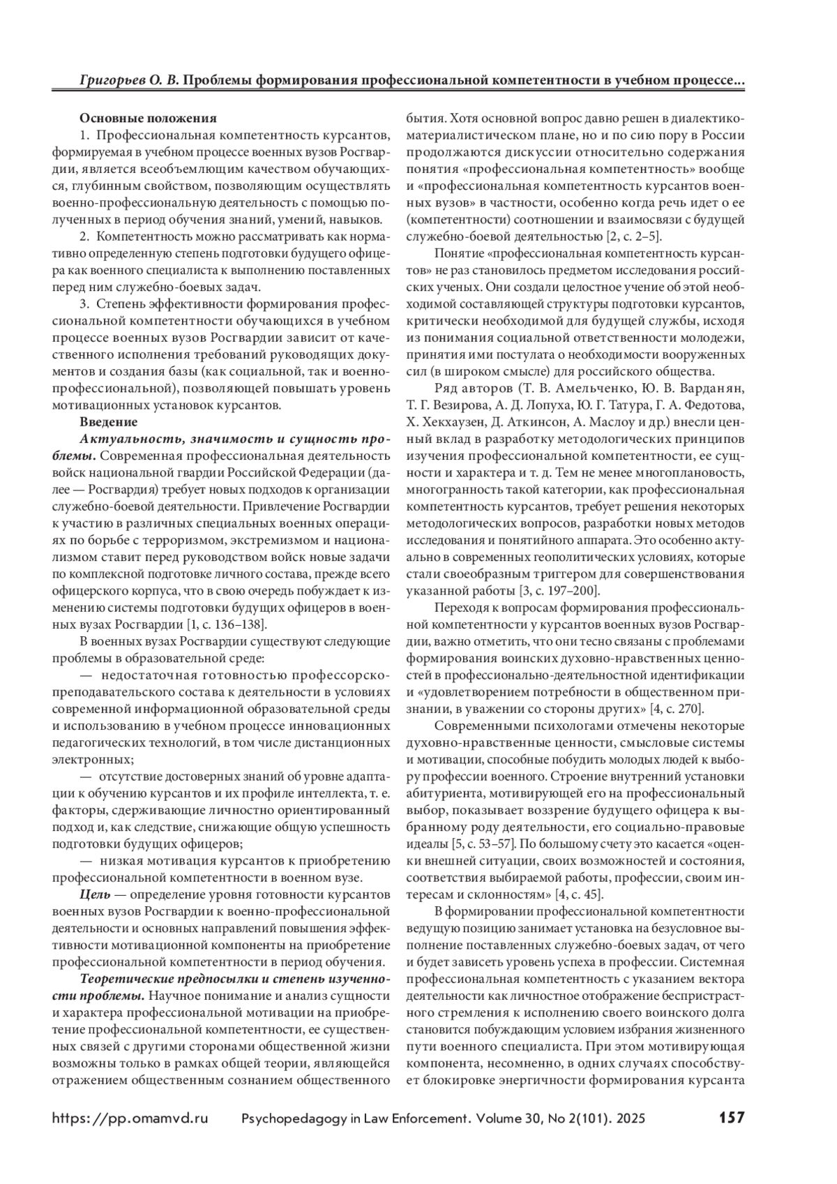1. Профессиональная компетентность курсантов, формируемая в учебном процессе военных вузов Росгвардии, является всеобъемлющим качеством обучающихся, глубинным свойством, позволяющим осуществлять военно-профессиональную деятельность с помощью полученных в период обучения знаний, умений, навыков.
