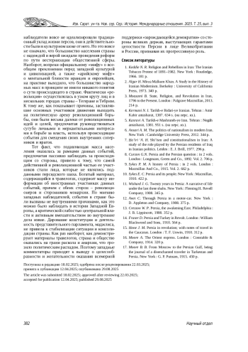 1. Keddie N. R. Religion and Rebellion in Iran: The Iranian Tobacco Protest of 1891-1982. New York: Routledge, 1966. 181 р.