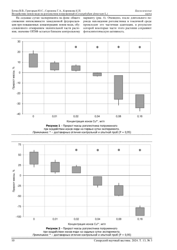 9. Thomas G., Stärk H.-J., Wellenreuther G., Dickinson B.C., Küpper H. Effects of nanomolar copper on water plants - comparison of biochemical and biophysical mechanisms of deficiency and sublethal toxicity under environmentally relevant conditions // Aquatic Toxicology. 2013. Vol. 140-141. P. 27-36. DOI: 10.1016/j.aquatox.2013.05.008