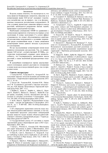 12. Krayem M., El Khatib S., Hassan Y., Deluchat V., Labrousse P. In search for potential biomarkers of copper stress in aquatic plants // Aquatic toxicology. 2021. Vol. 239. DOI: 10.1016/j.aquatox.2021.105952 EDN: CYTWUP