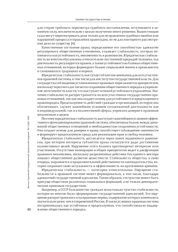 4. Архипова Е.Ю., Кондрашов Ю.А. К вопросу о понятии юридической стабильности // Евразийский юридический журнал. 2023. № 3(178). С. 65-68. EDN: ZMLNII