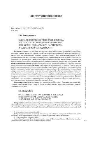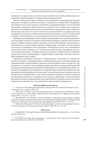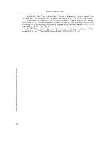 2. Гаджиев Г. А. Новые конституционные ценности: концепция устойчивого экономического роста с точки зрения юридической капитализации // Журнал российского права. 2022. Т. 26, № 1. С. 16-28. EDN: QALXVB