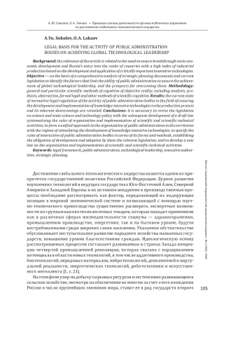 Ключевые фразы: правовые основы, публичное управление, технологическое лидерство, ОРГАНЫ ИСПОЛНИТЕЛЬНОЙ ВЛАСТИ, стратегическое планирование