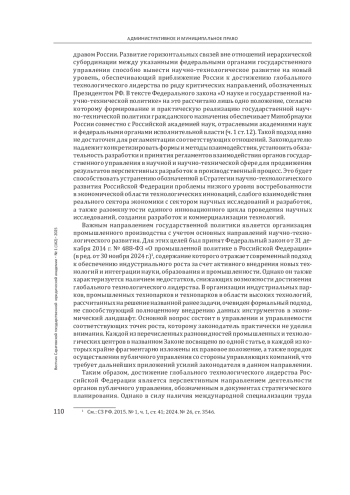 Статья: ПРАВОВЫЕ ОСНОВЫ ДЕЯТЕЛЬНОСТИ ОРГАНОВ ПУБЛИЧНОГО УПРАВЛЕНИЯ ПО ДОСТИЖЕНИЮ ГЛОБАЛЬНОГО ТЕХНОЛОГИЧЕСКОГО ЛИДЕРСТВА (2025)