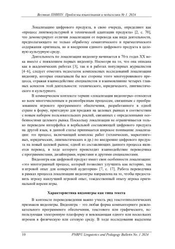 Статья: ПЕРЕДАЧА НАЦИОНАЛЬНО-ПРЕЦЕДЕНТНЫХ ИНТЕРТЕКСТУАЛЬНЫХ КОМПОНЕНТОВ ПРИ ЛОКАЛИЗАЦИИ ВИДЕОИГР (2024)
