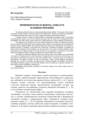Статья: ПРЕДСТАВЛЕНИЕ СУПРУЖЕСКИХ КОНФЛИКТОВ В КОРЕЙСКИХ ПАРЕМИЯХ (2024)