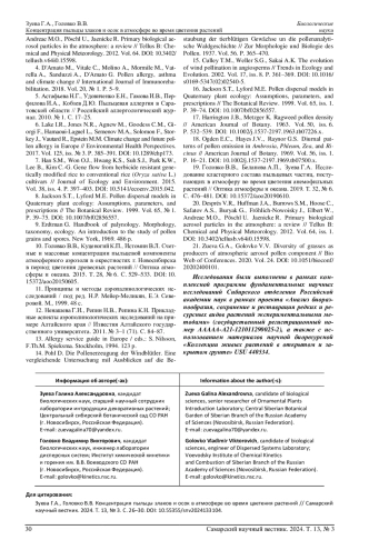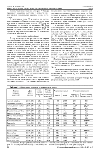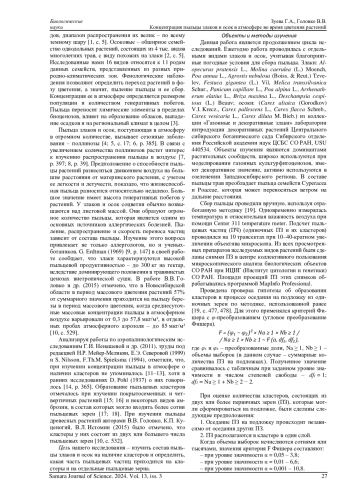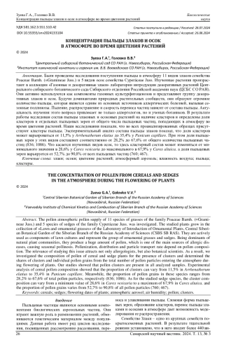 Статья: КОНЦЕНТРАЦИЯ ПЫЛЬЦЫ ЗЛАКОВ И ОСОК В АТМОСФЕРЕ ВО ВРЕМЯ ЦВЕТЕНИЯ РАСТЕНИЙ (2024)