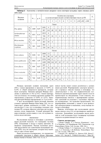 Ключевые фразы: злаки, осоки, цветение растений, атмосферный аэрозоль, влажность воздуха, пыльца, КЛАСТЕРЫ