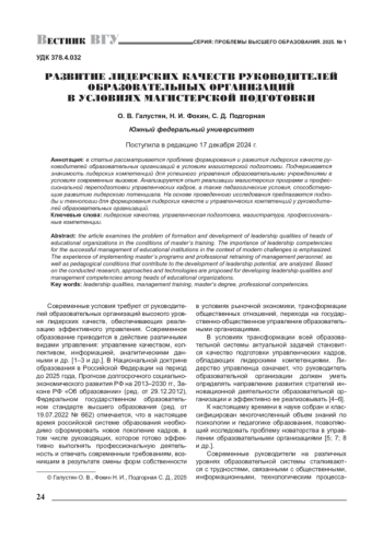 6. Савва Л. И. Развитие лидерских качеств будущих менеджеров в образовательной среде / Л. И. Савва, Е. К. Якунина // Проблемы современного педагогического образования. - 2019. - № 64-4. - С.189-192. EDN: QMKTGW