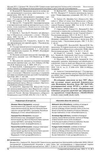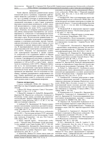 13. Сапрыкин В.С., Постников Б.А. Маралий корень - перспективное лекарственное растение для использования в кормопроизводстве // Сибирский вестник сельскохозяйственной науки. 2010. № 6 (210). С. 104-107. EDN: MSLUAD