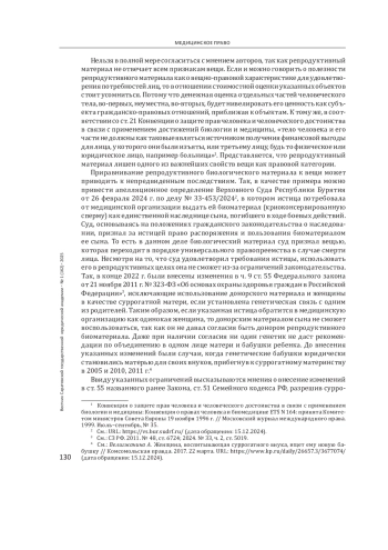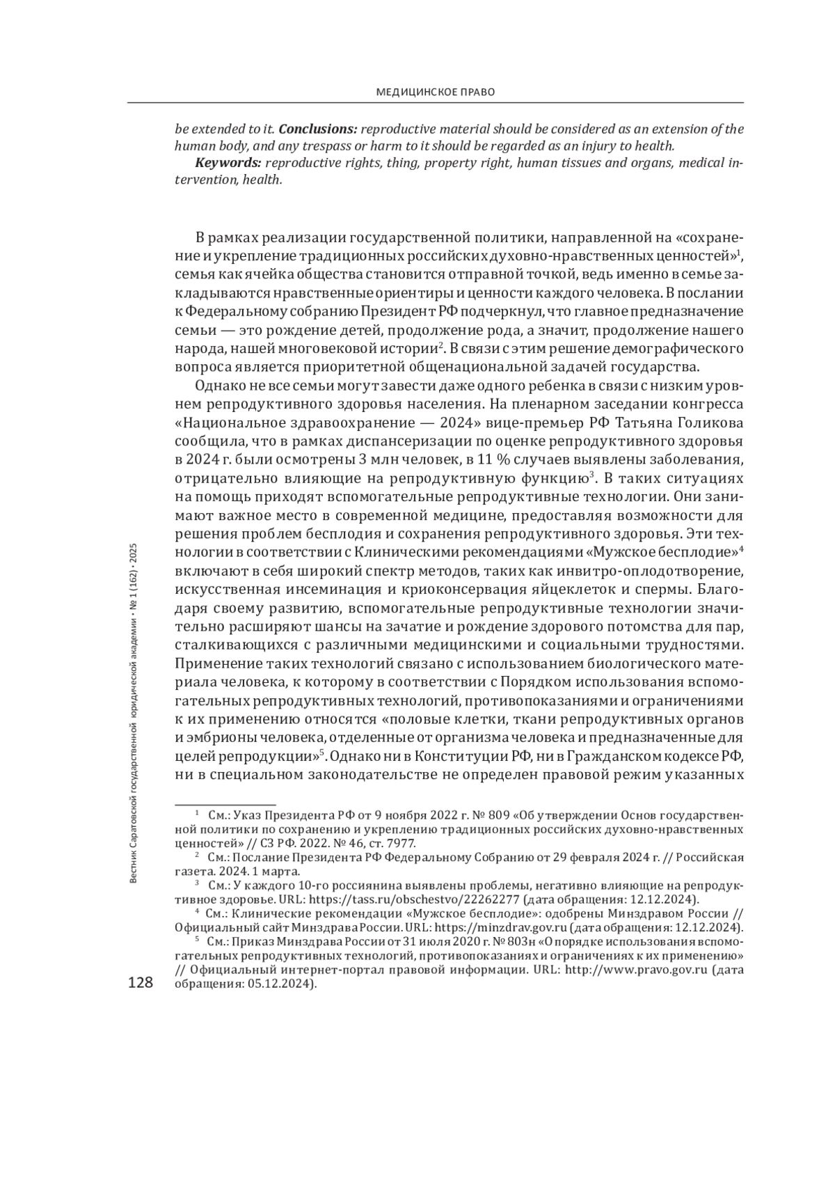 Статья: ПРАВОВОЙ СТАТУС РЕПРОДУКТИВНОГО БИОЛОГИЧЕСКОГО МАТЕРИАЛА (2025)