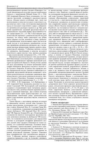 Статья: ИССЛЕДОВАНИЕ ПАМЯТНИКОВ КРАСНОМОСТОВСКОГО ТИПА НА СРЕДНЕЙ ВОЛГЕ (2024)