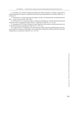 7. Пономарев Д. А. Семейное предпринимательство: частноправовое явление: автореф. дис. … канд. юрид. наук. Курск, 2023. 28 с. EDN: FIEDTY