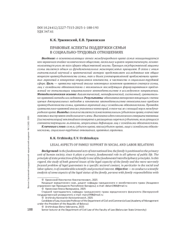 УРЖИНСКИЙ К. К., УРЖИНСКАЯ Е. В. ПРАВОВЫЕ АСПЕКТЫ ПОДДЕРЖКИ СЕМЬИ В СОЦИАЛЬНО-ТРУДОВЫХ ОТНОШЕНИЯХ // ВЕСТНИК САРАТОВСКОЙ ГОСУДАРСТВЕННОЙ ЮРИДИЧЕСКОЙ АКАДЕМИИ. 2025. № 1 (162)