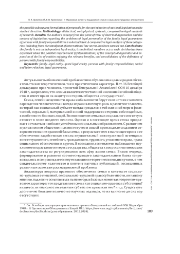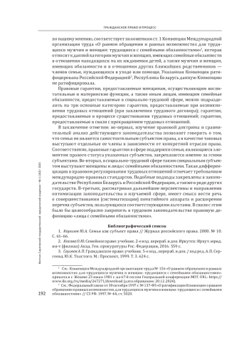 Ключевые фразы: СЕМЬЯ, СУБЪЕКТ ПРАВА, квазисубъект права, лица с семейными обязанностями, СОЦИАЛЬНО-ТРУДОВЫЕ ОТНОШЕНИЯ, правовые гарантии