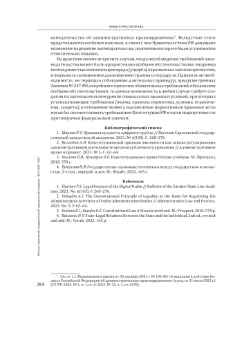 2. Вологдин А. И. Конституционный принцип законности как основа регулирования административной деятельности органов публичного управления // Административное право и процесс. 2023. № 5. С. 62-64. EDN: OSZGEC