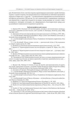 1. Баранов В.М., Поленина С. В. Система права, система и систематизация законодательства в правовой системе России: учеб. пособие. Н. Новгород: Нижегор. акад. МВД РФ, 2002. 239 с. EDN: YQWKCZ