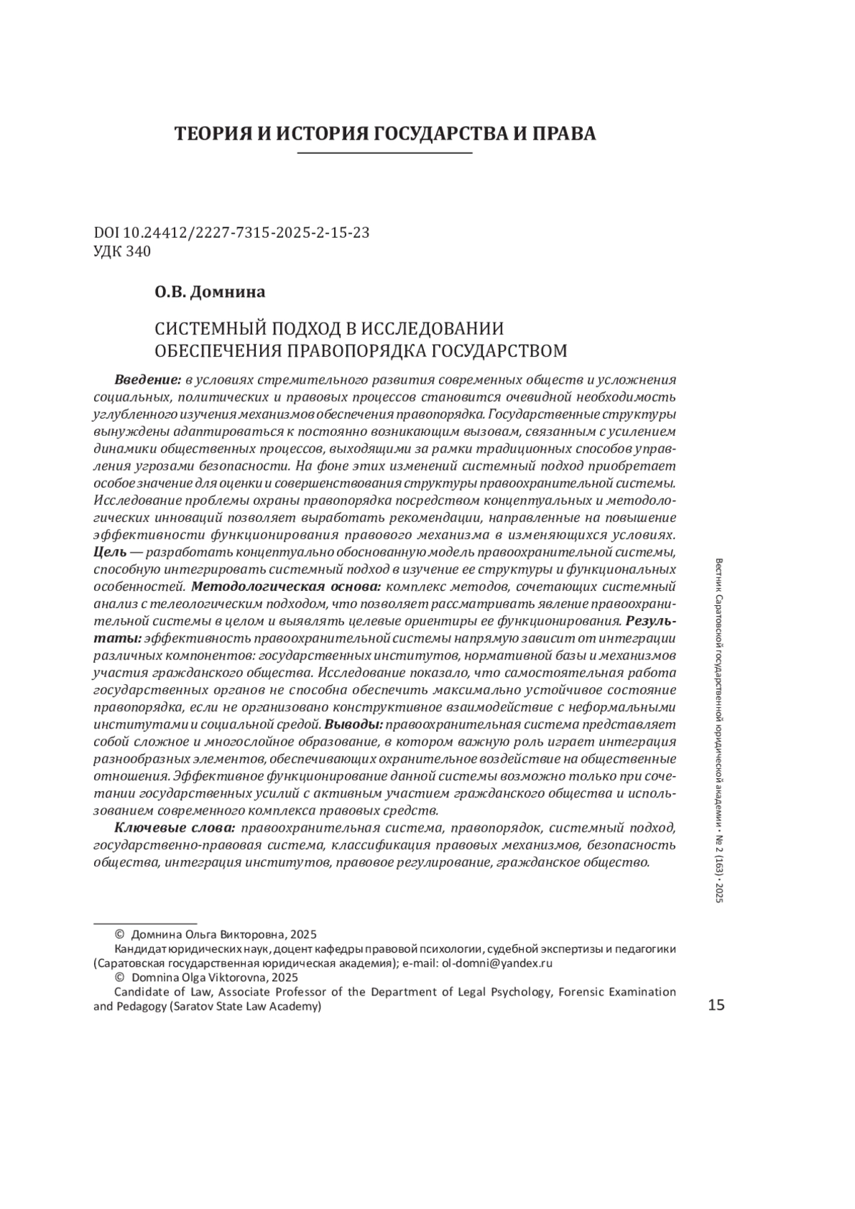 Методологическая основа: комплекс методов, сочетающих системный анализ с телеологическим подходом, что позволяет рассматривать явление правоохранительной системы в целом и выявлять целевые ориентиры ее функционирования.