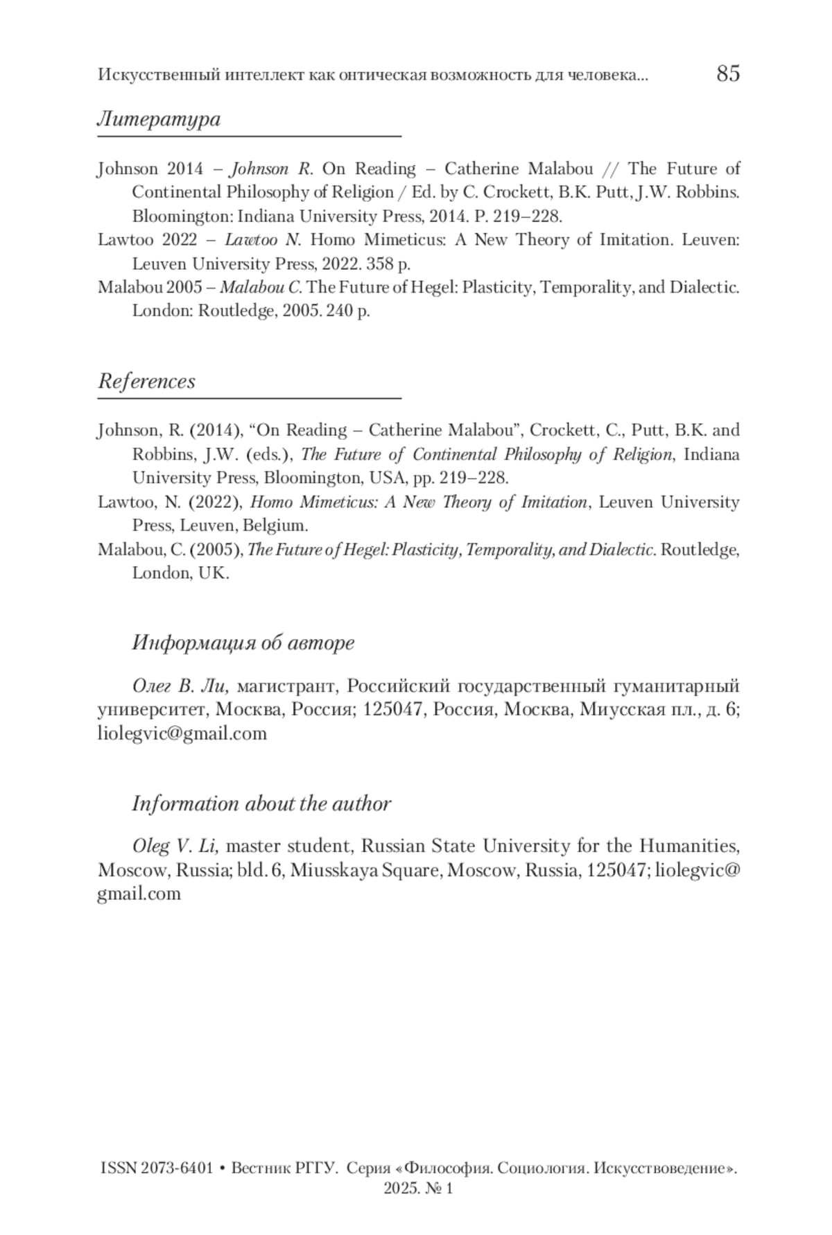 1. Johnson 2014 - Johnson R. On Reading - Catherine Malabou // The Future of Continental Philosophy of Religion / Ed. by C. Crockett, B.K. Putt, J.W. Robbins. Bloomington: Indiana University Press, 2014. P. 219-228.