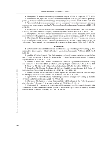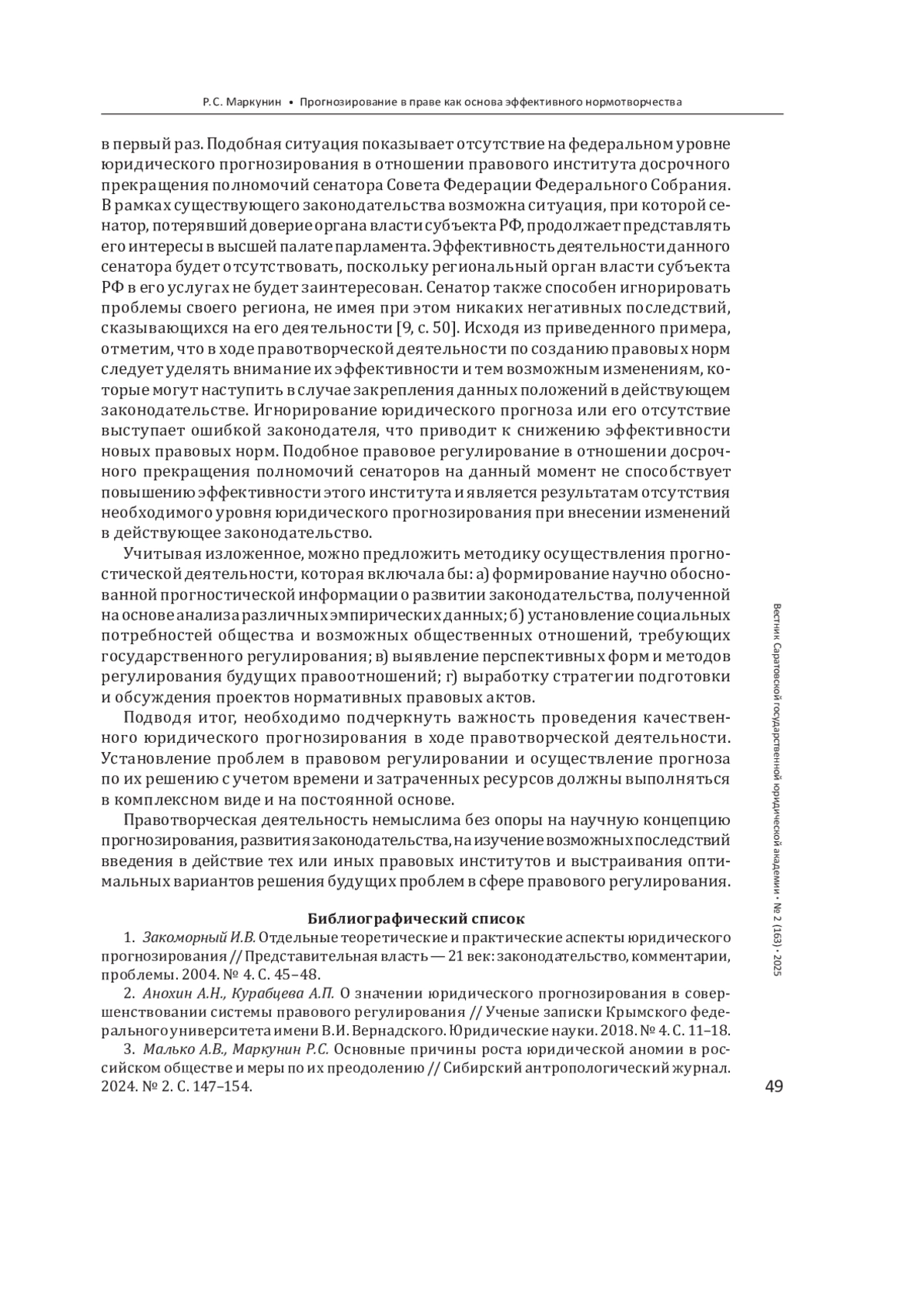3. Малько А.В., Маркунин Р. С. Основные причины роста юридической аномии в российском обществе и меры по их преодолению // Сибирский антропологический журнал. 2024. № 2. С. 147-154. EDN: MPRTME