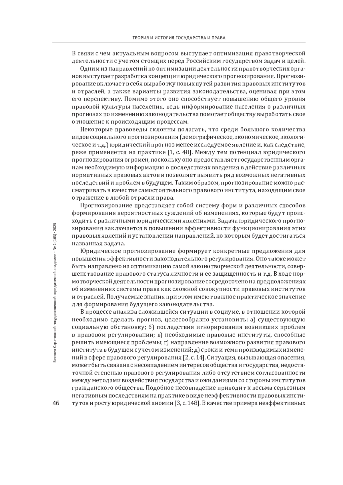 2. Анохин А.Н., Курабцева А.П. О значении юридического прогнозирования в совершенствовании системы правового регулирования // Ученые записки Крымского федерального университета имени В. И. Вернадского. Юридические науки. 2018. № 4. С. 11-18.