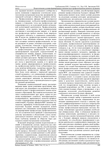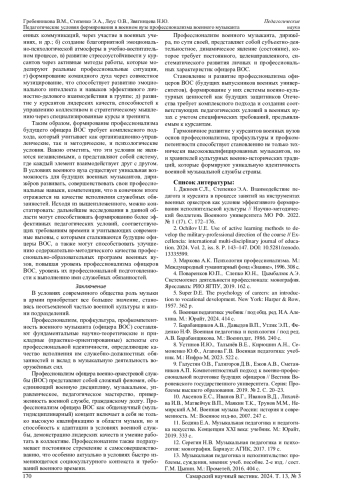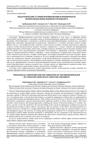 Статья: ПЕДАГОГИЧЕСКИЕ УСЛОВИЯ ФОРМИРОВАНИЯ В ВОЕННОМ ВУЗЕ ПРОФЕССИОНАЛИЗМА ВОЕННОГО МУЗЫКАНТА (2024)