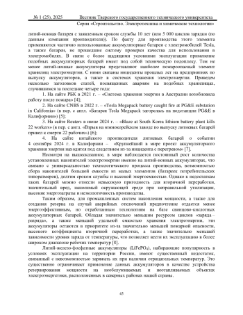 5. Kolodny L. Tesla Megapack Battery Caught Fre at PG&E Substation in California // CNBC. 2022. URL: https://www.cnbc.com/2022/09/20/tesla-megapack-battery-caught-fire-at-pge-substation-in-california.html (дата обращения: 11.02.2025).
