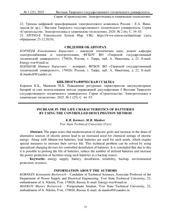 В статье отмечено, что модернизация электрических сетей и повышение доли альтернативных источников электроэнергии ведут к увеличению потребности в химических накопителях электрической энергии. Наряду с литий-ионными аккумуляторами для подобных нужд используют свинцовые аккумуляторы, требующие специальных мер для увеличения срока их службы. Данная техническая задача может быть решена с помощью специализированных зарядных устройств для управляемой десульфатации батарей. Сделан вывод, что за счет этого можно продлить ресурс батарей, уменьшить количество утилизируемых аккумуляторов и повысить энергозащищенность объектов, использующих такие батареи в качестве резервного источника