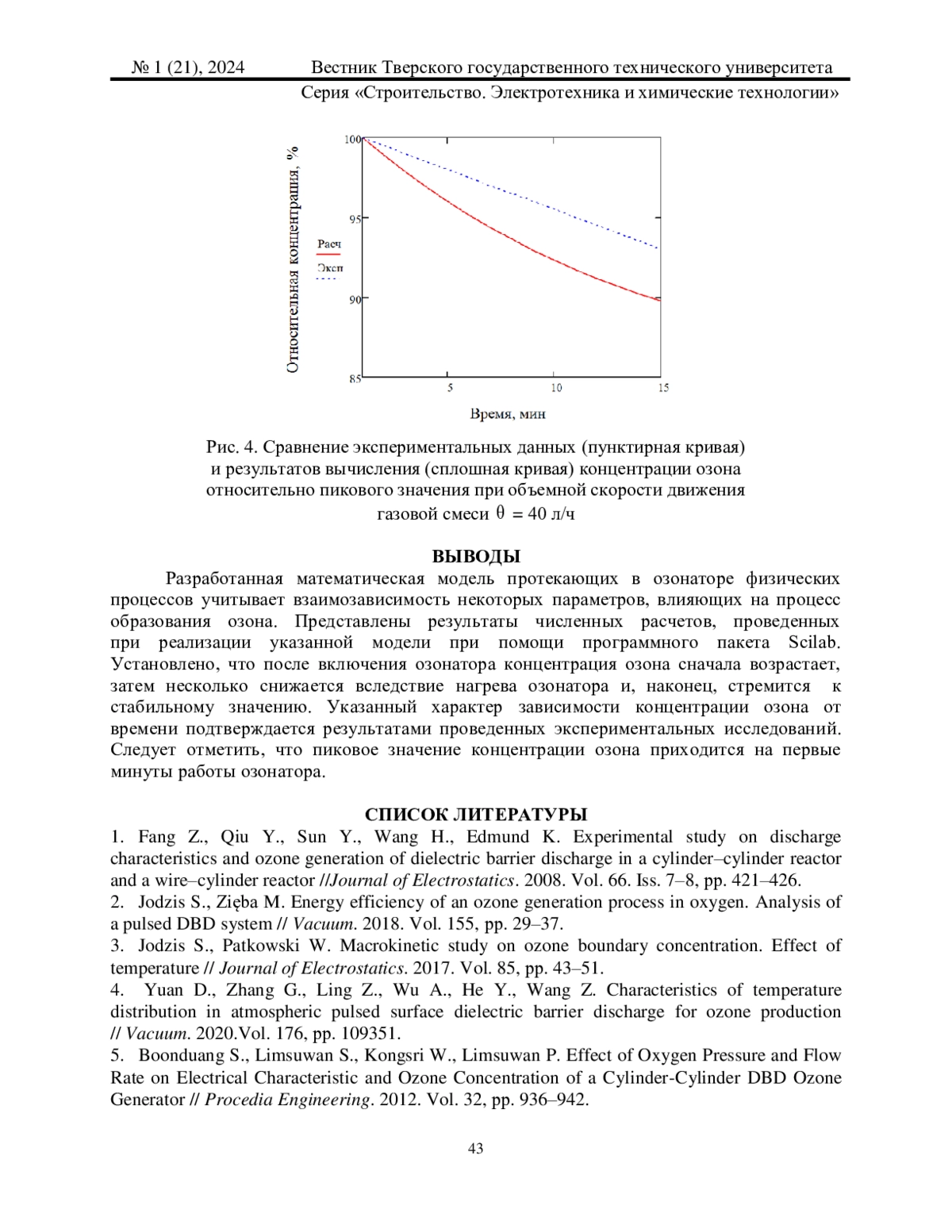 1. Fang Z., Qiu Y., Sun Y., Wang H., Edmund K. Experimental study on discharge characteristics and ozone generation of dielectric barrier discharge in a cylinder-cylinder reactor and a wire-cylinder reactor //Journal of Electrostatics. 2008. Vol. 66. Iss. 7-8, рр. 421-426.