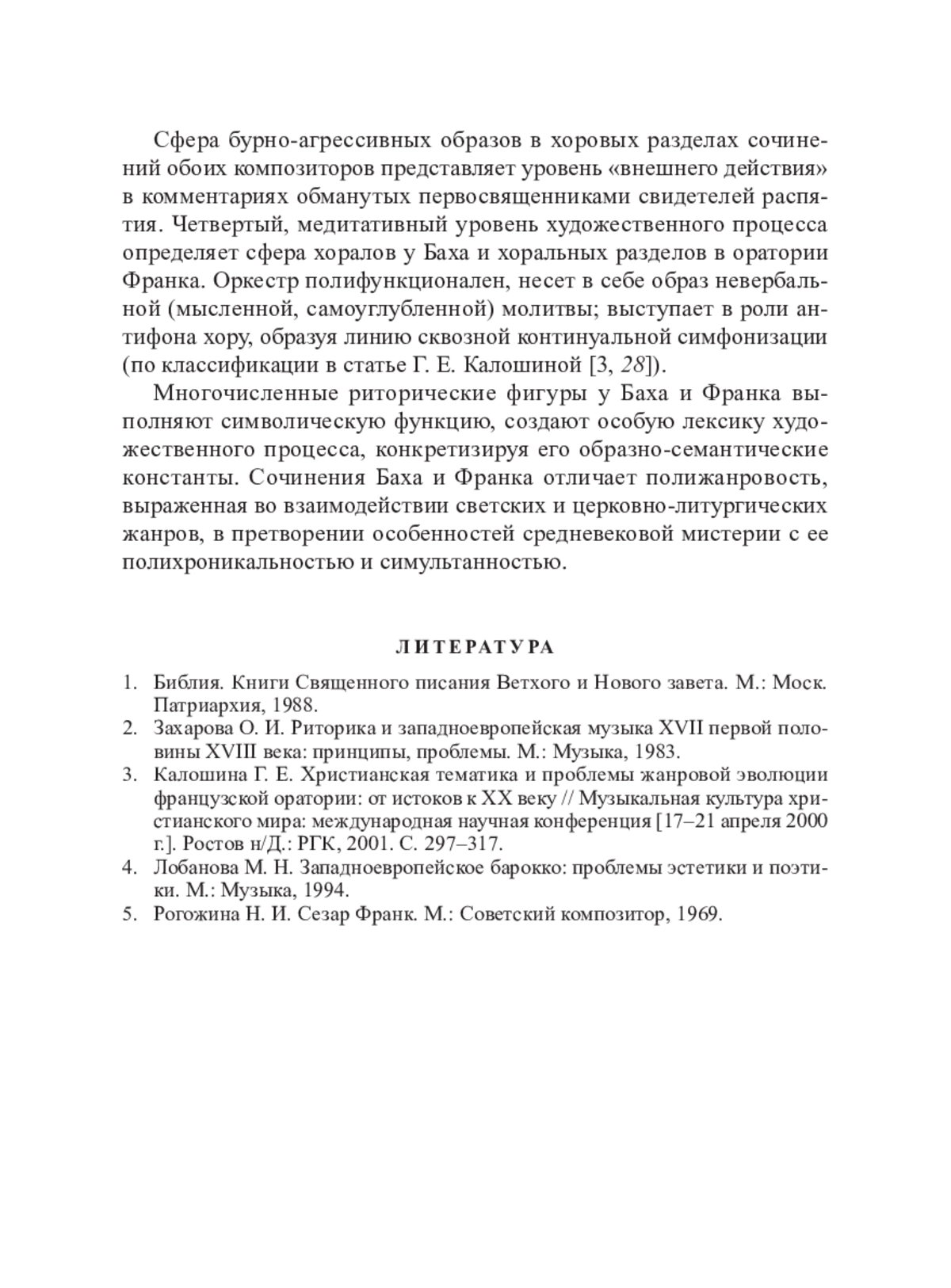 3. Калошина Г. Е. Христианская тематика и проблемы жанровой эволюции французской оратории: от истоков к ХХ веку // Музыкальная культура христианского мира: международная научная конференция [17–21 апреля 2000 г.]. Ростов н/Д.: РГК, 2001. С. 297–317.