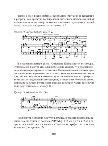 Как известно, Танеев был мастером полифонии и внес значительный вклад в ее развитие. В фактуре произведений Метнера полифонические приемы также очень важны — как в изложении материала, так и в его развитии. Но учился ли Николай Карлович полифонии? Несомненно, учился, но довольно необычным способом. Приведу цитату из воспоминаний Анны Михайловны Метнер, жены композитора: «По композиции Николай Карлович консерватории не окончил. Даже курс теоретических предметов, обязательных для всех пианистов, он прошел не полностью. В частности, он числился в 1897/98 учебном году в классе контрапункта, который вел С. И. Танеев, но фактически перестал посещать эти занятия со второго полугодия» [2, 37].