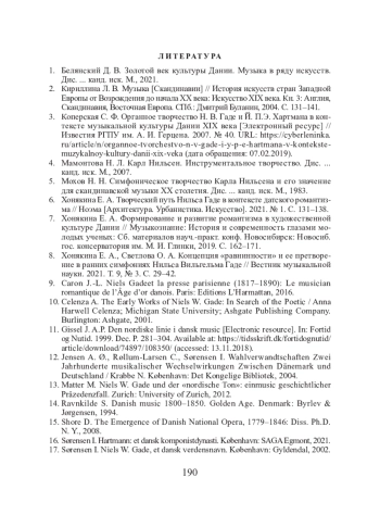 3. Коперская С. Ф. Органное творчество Н. В. Гаде и Й. П.Э. Хартмана в контексте музыкальной культуры Дании XIX века [Электронный ресурс] // Известия РГПУ им. А. И. Герцена. 2007. № 40. URL: https://cyberleninka. ru/article/n/organnoe-tvorchestvo-n-v-gade-i-y-p-e-hartmana-v-kontekstemuzykalnoy- kultury-danii-xix-veka (дата обращения: 07.02.2019).