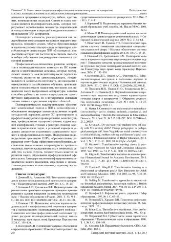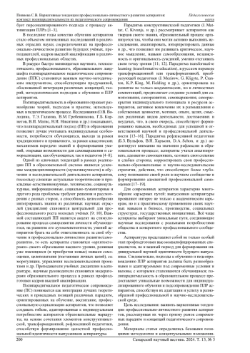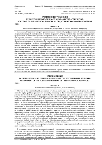 Статья: ВАРИАТИВНЫЕ ТЕНДЕНЦИИ ПРОФЕССИОНАЛЬНО-ЛИЧНОСТНОГО РАЗВИТИЯ АСПИРАНТОВ: КОНТЕКСТ ПОЛИПАРАДИГМАЛЬНОСТИ ИХ ПЕДАГОГИЧЕСКОГО СОПРОВОЖДЕНИЯ (2024)