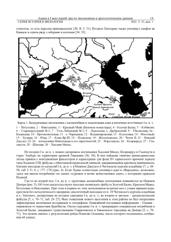 35. Яценко С.А. Аланская проблема и центральноазиатские элементы в культуре кочевников Сарматии рубежа I-II вв. н. э. // Петербургский археологический вестник. 1993. Вып. 3. С. 60-72. EDN: UVCOZU