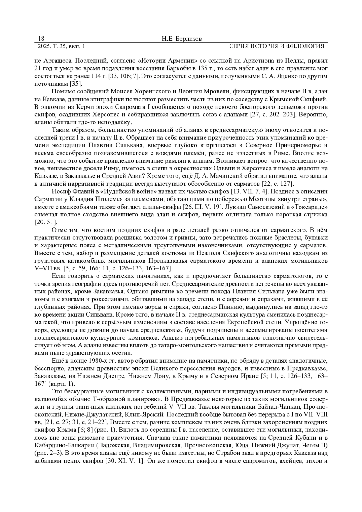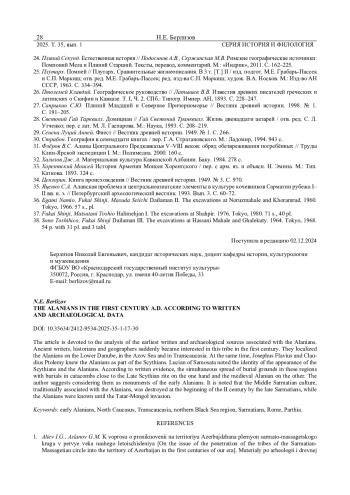 6. Берлизов Н.Е. Аланы-скифы // Историко-археологический альманах. 1996. Вып. 2. С. 105-117.