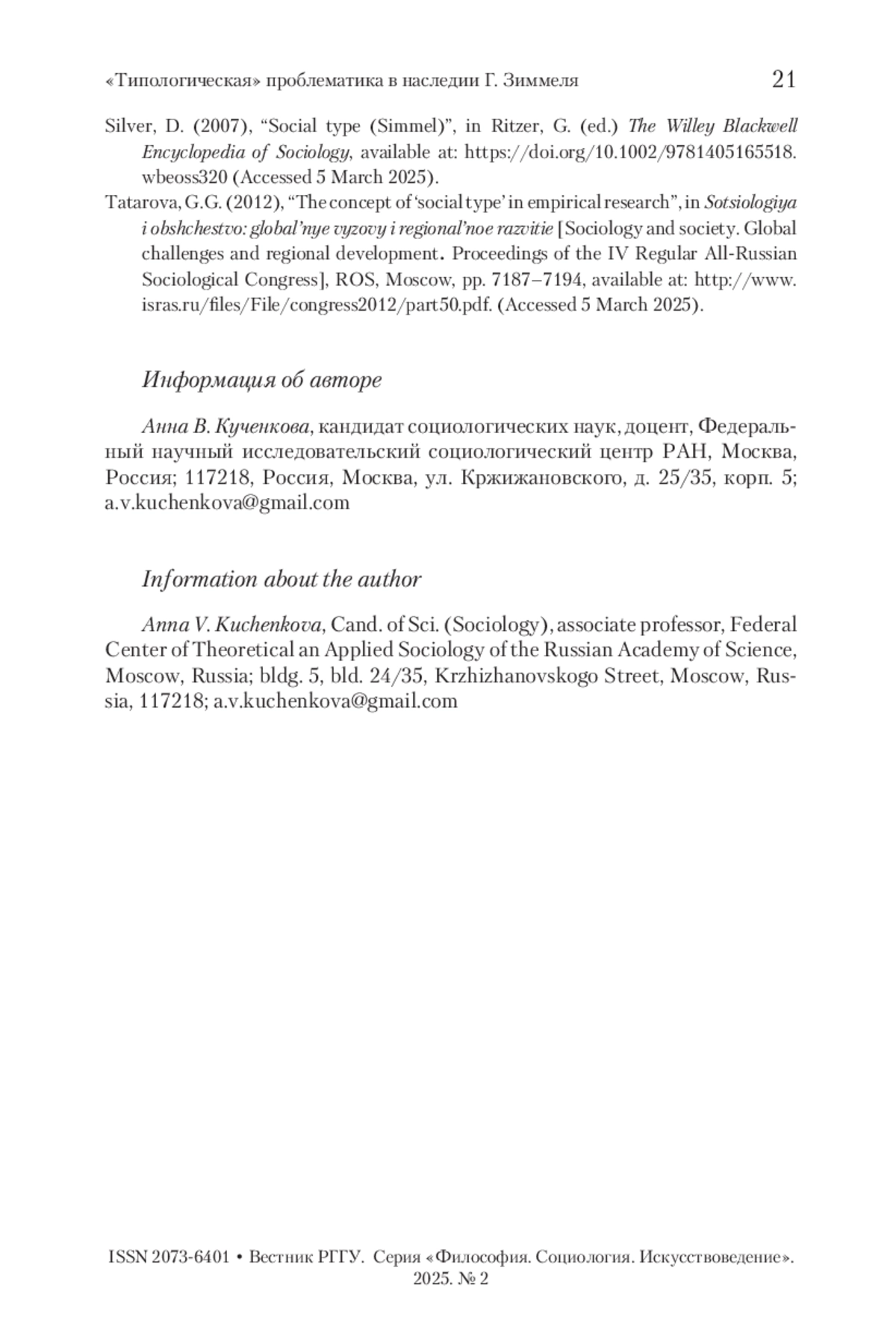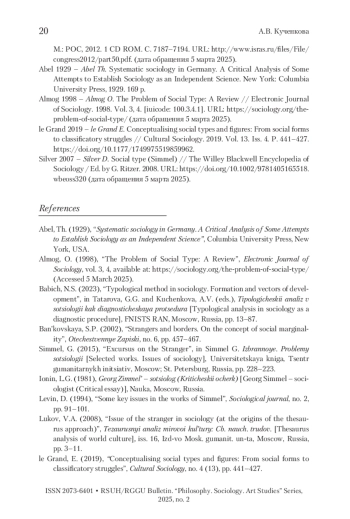 11. Silver 2007 - Silver D. Social type (Simmel) // The Willey Blackwell Encyclopedia of Sociology / Ed. by G. Ritzer. 2008. URL: https://doi.org/10.1002/9781405165518.wbeoss320 (дата обращения 5 марта 2025).