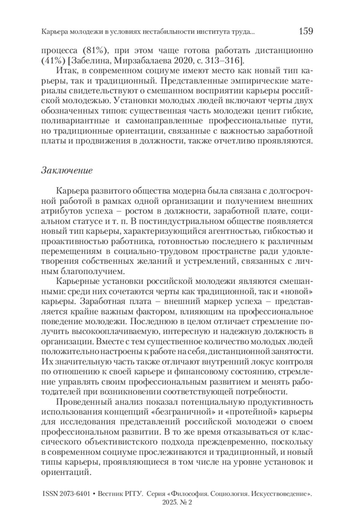 ДИАНОВ Р. К. КАРЬЕРА МОЛОДЕЖИ В УСЛОВИЯХ НЕСТАБИЛЬНОСТИ ИНСТИТУТА ТРУДА: ТЕОРЕТИКО-МЕТОДОЛОГИЧЕСКИЙ АНАЛИЗ // ВЕСТНИК РГГУ. СЕРИЯ: ФИЛОСОФИЯ. СОЦИОЛОГИЯ. ИСКУССТВОВЕДЕНИЕ. 2025. № 2