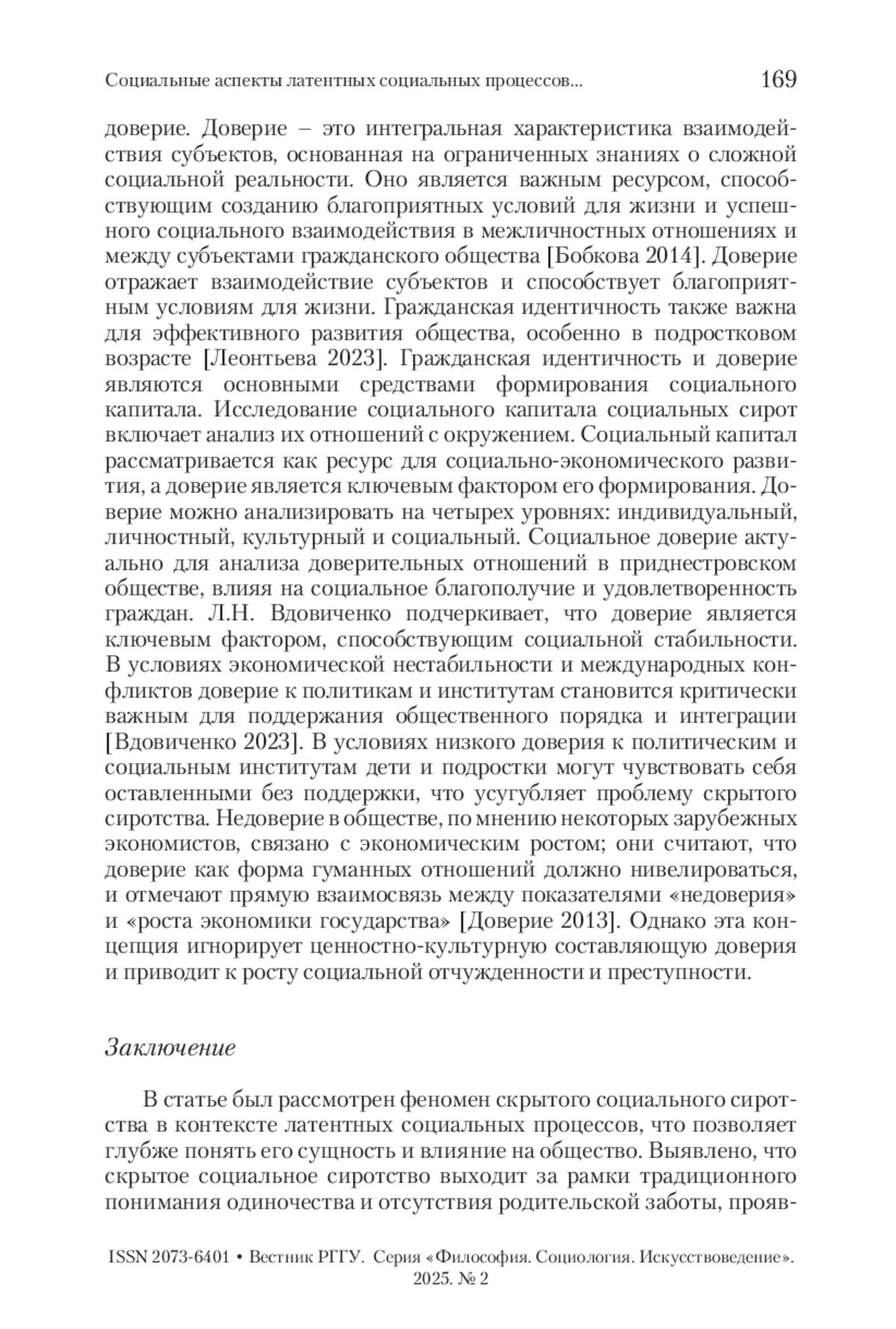 3. Вдовиченко 2023 - Вдовиченко Л.Н. Доверие как важный фактор социальной стабильности // Вестник РГГУ. Серия «Философия. Социология. Искусствоведение». 2023. № 2. С. 64-72.