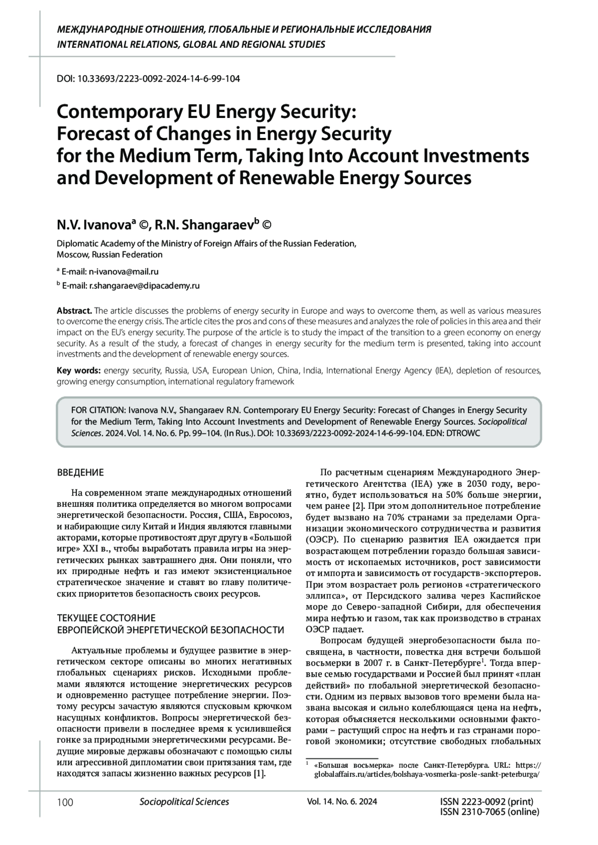Annenkov V.I., Moiseev A.V., Shangaraev R.N. Energy security as a factor in ensuring national and international security. Issues of National and Federal Relations. 2021. Vol. 11. No. 4 (73). Pp. 1199-1208. (In Rus.). EDN: ACDOYB