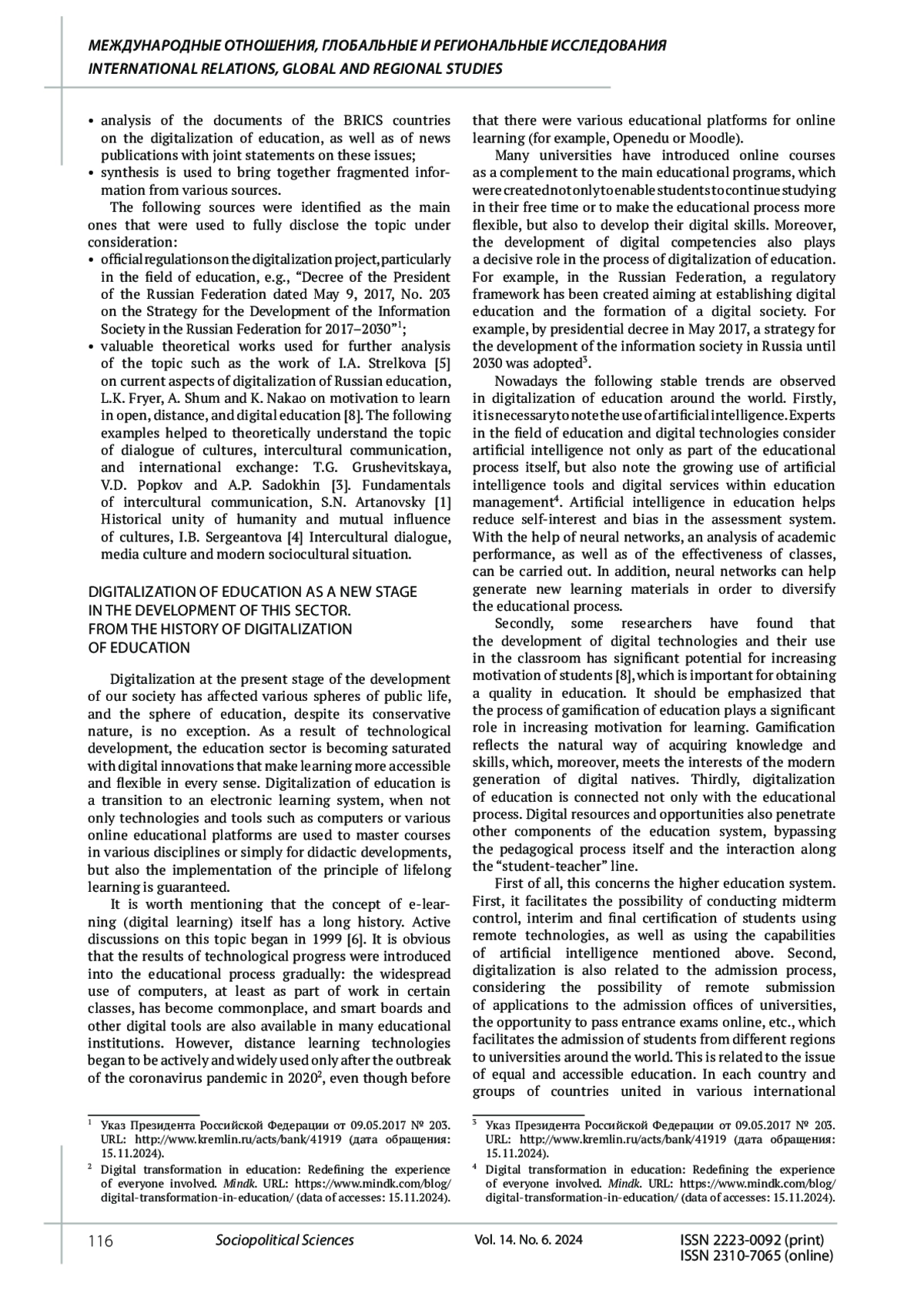 6. Хамитов Р.М. Цифровизация образования и ее аспекты // Современные проблемы науки и образования. 2021. № 3. DOI: 10.17513/spno.30771 EDN: GNLYIV